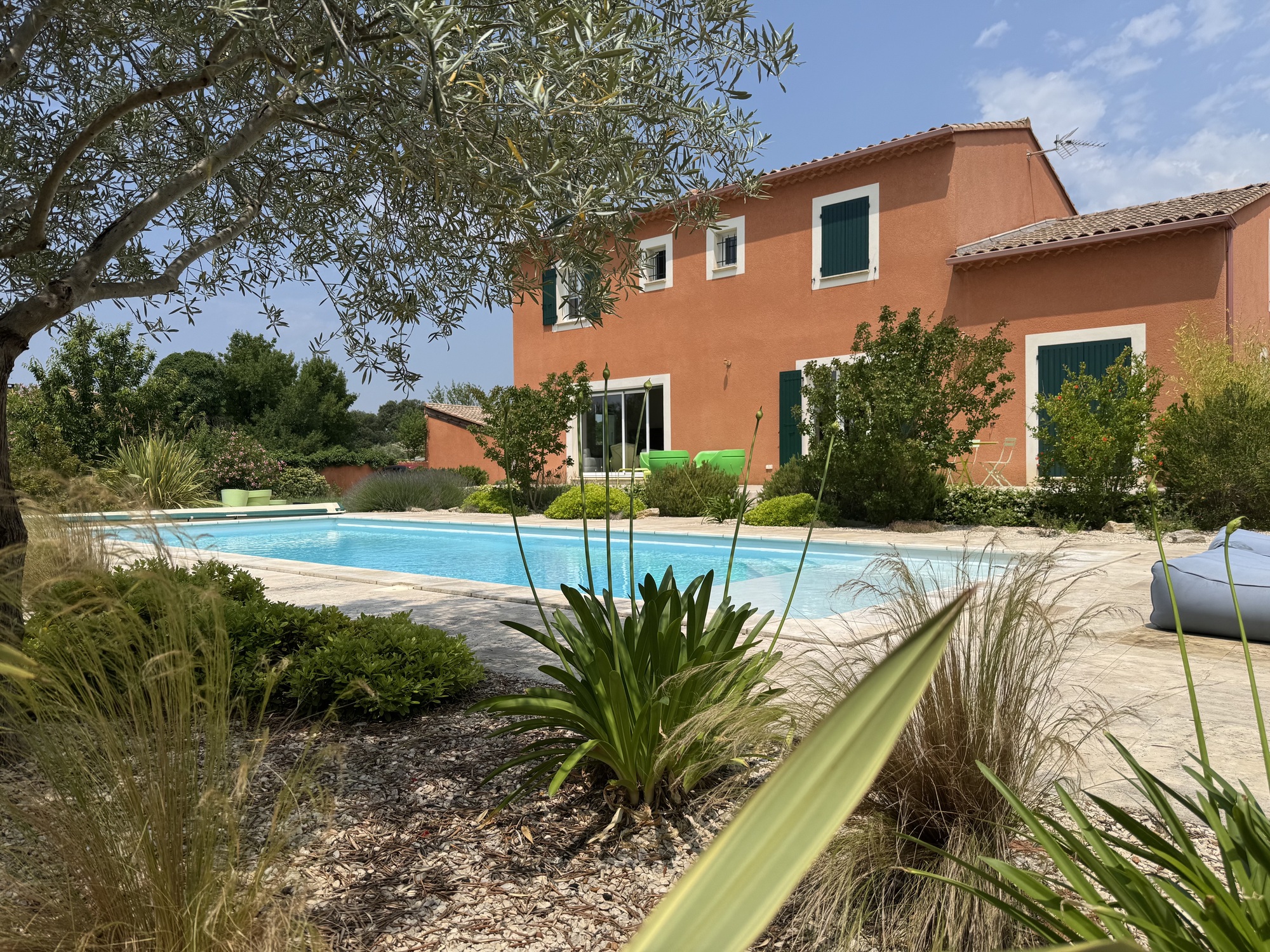 À l’extérieur, tout a été pensé pour le bien-être et la convivialité. Le terrain de 1 290 m², entièrement clos et paysagé, abrite une piscine au sel de 11 x 5 mètres chauffée par pompe à chaleur, un pool house équipé d’une cuisine d’été et un local technique. L’arrosage automatique facilite l’entretien du jardin, tandis qu’un grand garage double avec porte motorisée et un second garage indépendant complètent les prestations de ce bien.